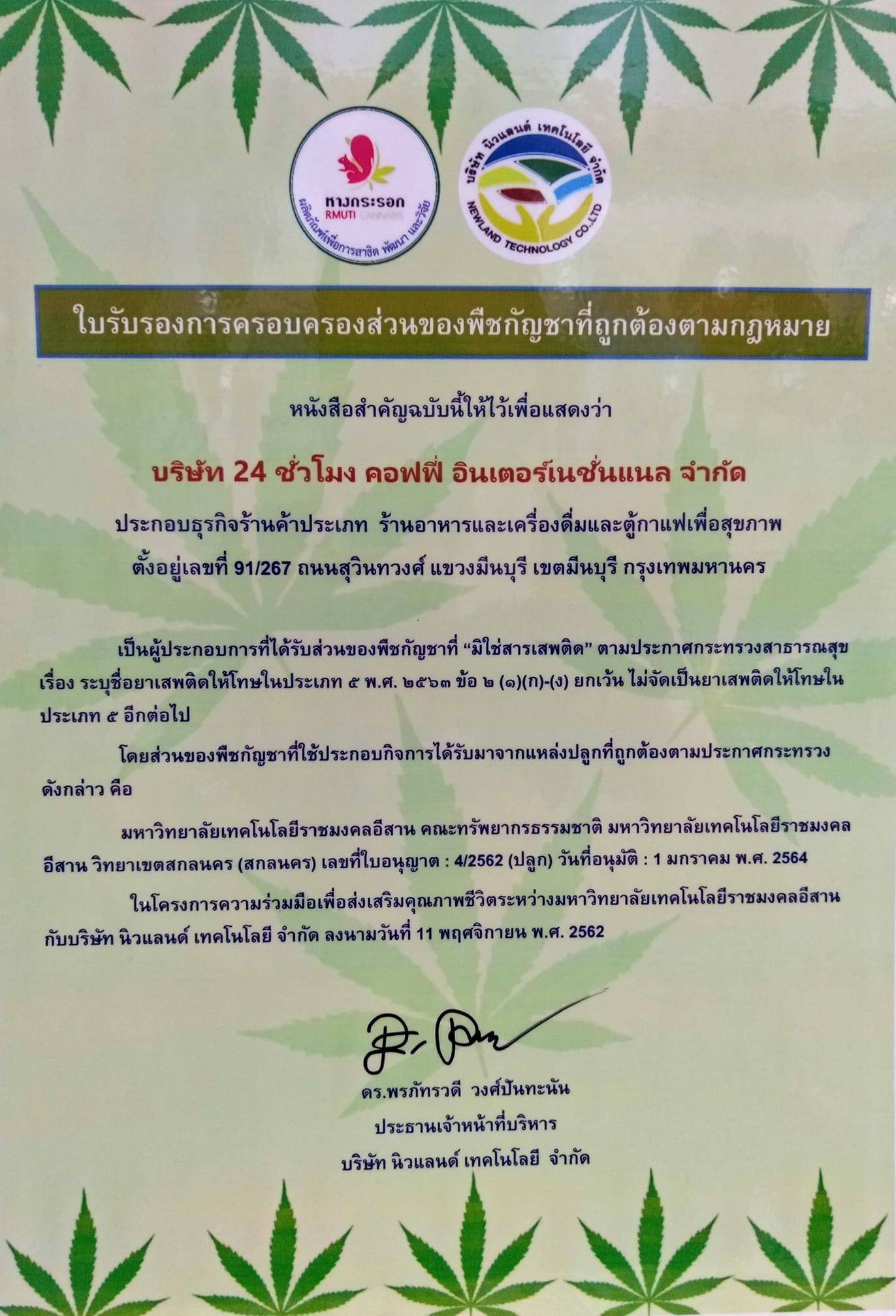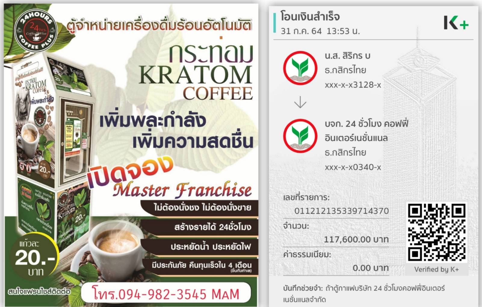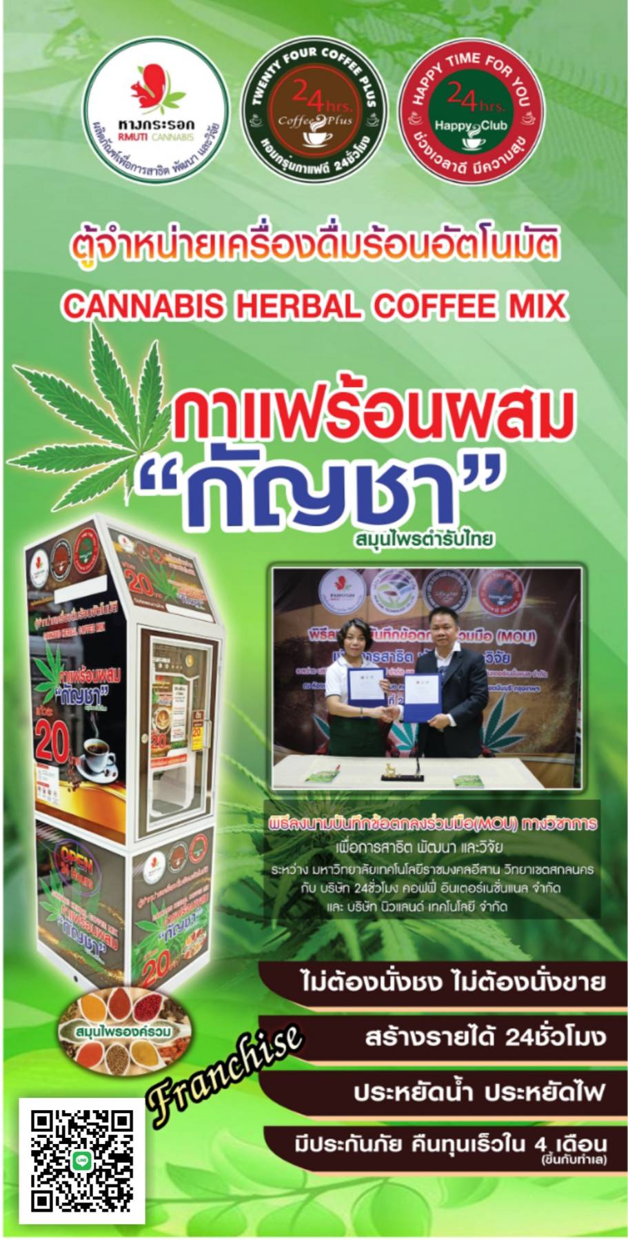 เริ่มจำหน่ายตู้กาแฟผสมกัญชาCBD หรือแบบกาแฟผสมใบกระท่อม ในระบบมาสเตอร์แฟรน์ไซส์