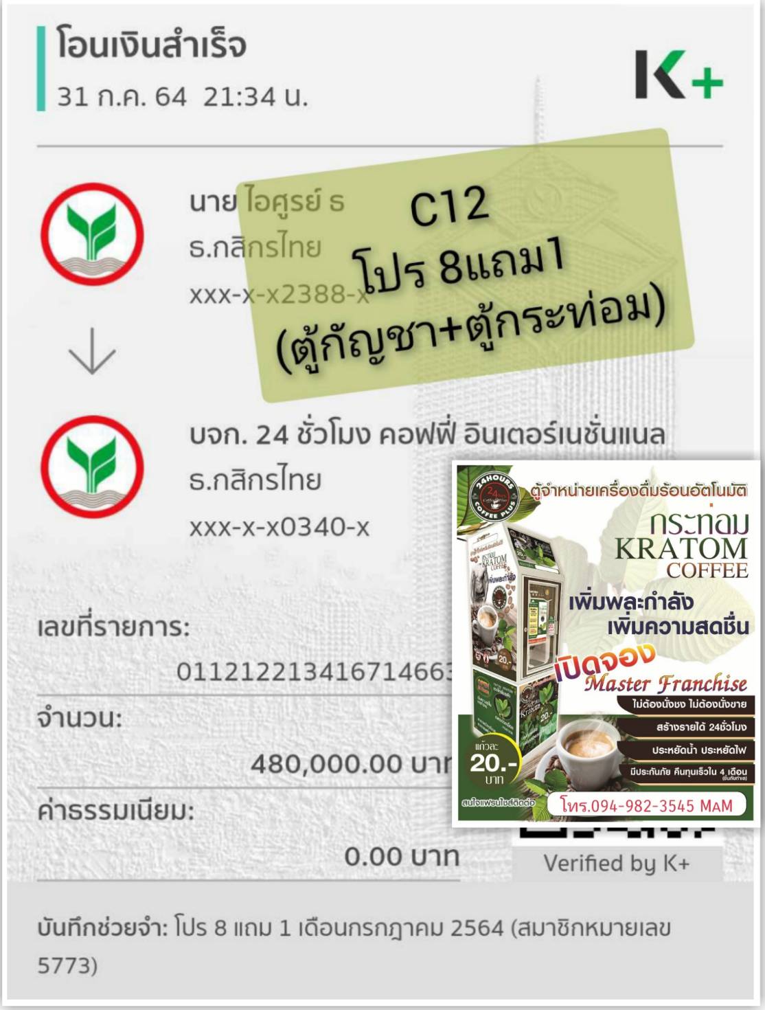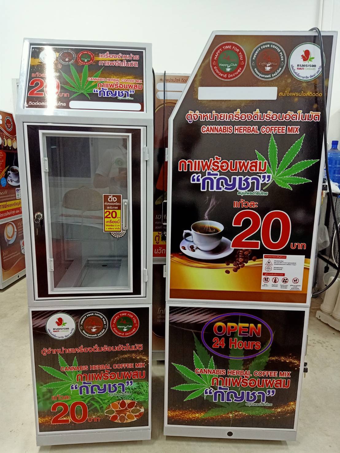 (มีทั้งตู้กาแฟร้อนแบบธรรมดาและแบบกาแฟร้อนผสมกัญชาหรือการแฟร้อนผสมผสมใบกระท่อมหยอดเหรียญ24ชม.