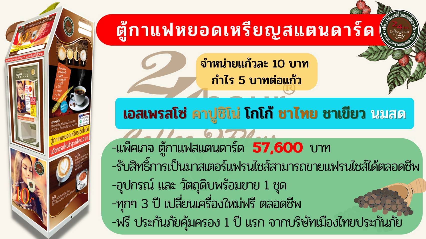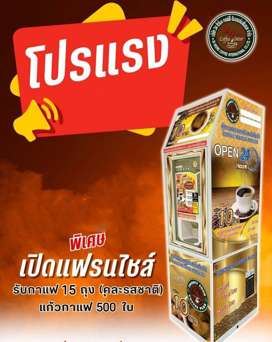 24coffee แฟรนไชส์ตู้กาแฟอัตโนมัติ แบบหยอดเหรียญ24ชั่วโมง ทำเงินทำงานแทนคุณแบบไม่มีความเสี่ยงและลงทุนต่ำคืนทุนไวสร้างรายได้ทุกวัน กาแฟแฟรนไชส์อัตโนมัติแบบหยอดเหรียญ แก้วละ10 บาท