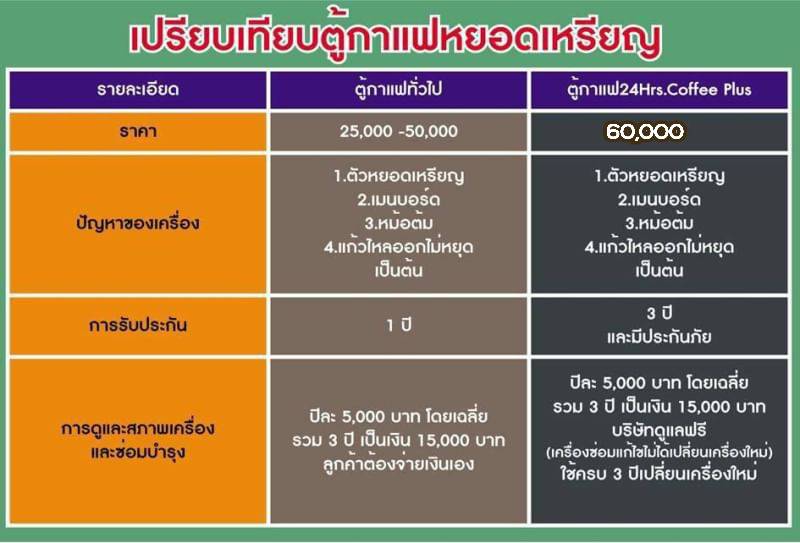 บ.24คอฟฟี่ เป็นบริษัทที่ชำนาญการด้านตู้กาแฟหยอดเหรียญมามากกว่า3ปี มียอดขายตู้กาแฟธรรมดามากกว่า 10000ตู้